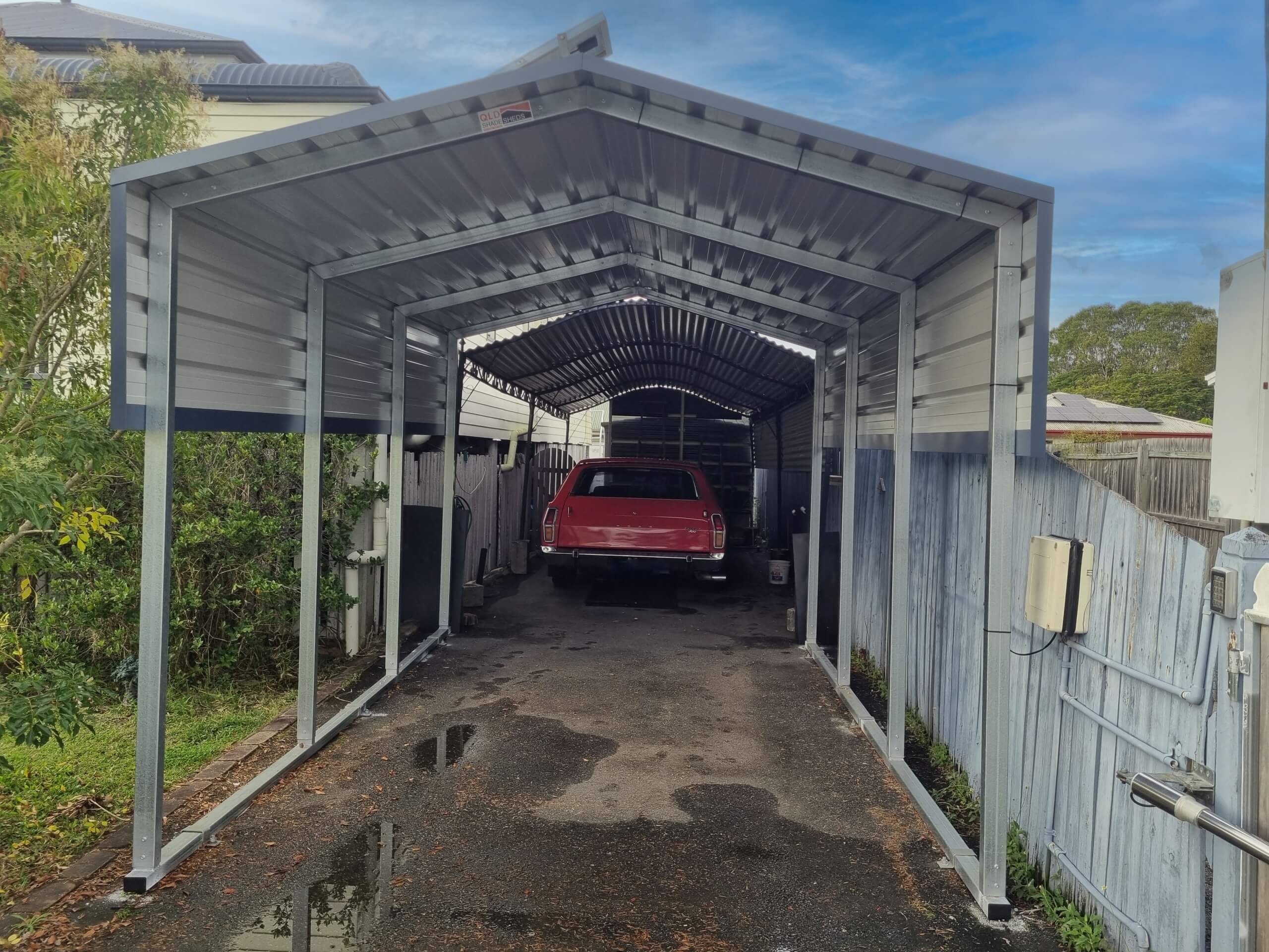 The gable design sheds hail and water efficiently, COLORBOND® at a 0.42 BMT thickness handles impact without denting, and the galvanised steel frames cope with our dramatic temperature swings from -5°C winter mornings to 35°C summer days without deteriorating.